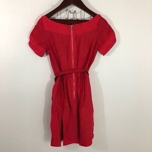 Andrew Marc Red Skater Fit & Flare 6 Buckle Dress Retro Classic