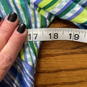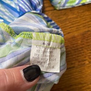 Beautiful Andria Lieu top, made of a polyester and spandex blend. It is lightweight and has great coloring. There is an accented gathering at the neck and at the wrist.