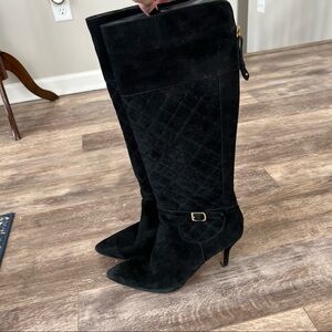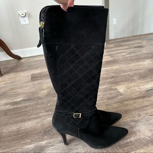 Andrienne Vittadini Jabine Faux Suede Quilted Pointy Toe Tall Boots