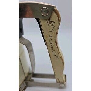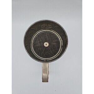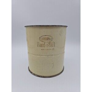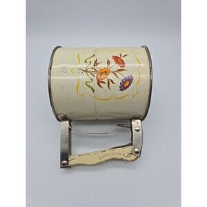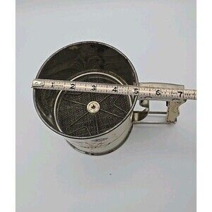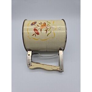 The Androck Hand-i-Sift 3 Screen Flour Sifter is a vintage kitchen tool with a charming floral daisy design. The handle is made of wood with a metal screen. This small round sifter is perfect for sifting flour, sugar, powdered sugar, and cocoa. The 1950s style and original design make it a unique addition to any collection of kitchen gadgets.