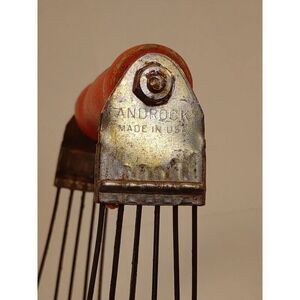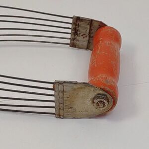 Androck Pastry Blender, Vintage made From Stainless Steel With a Orange Painted Wooden Handle . In Used Condition With Paint Chipped On The Handle And Wires Are Bent, Still Can Be Used . Also Good For a Farmhouse Kitchen Decor VINTAGE COLLECTION. Is it 5.5 Inches X 4 Inches .