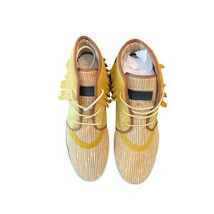 The Android Homme Mach 2 Fringe Sneaker in mustard blends urban street style with a boho twist, featuring bold fringe detailing and a lace-up design. These sneakers combine artistic flair with modern footwear, making them a standout statement piece for casual, fashion-forward looks.