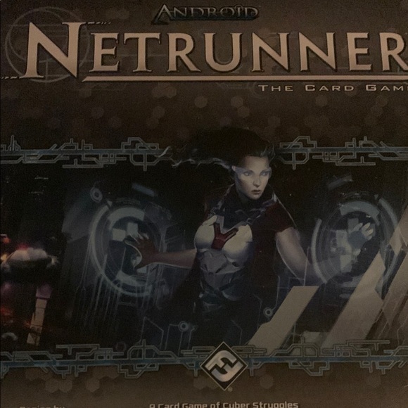 Dive into cyber struggles with the Android Netrunner card game. Features a futuristic design with vibrant colors.