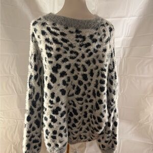 Black and white spotted faux fur sweater is a great staple to have in your closet. This can be dressed up or down!
