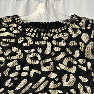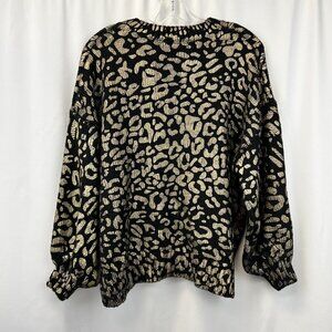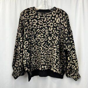 Andthewhy Womens Black Gold Leopard Print Long Sleeve Pullover Sweater Sz Small