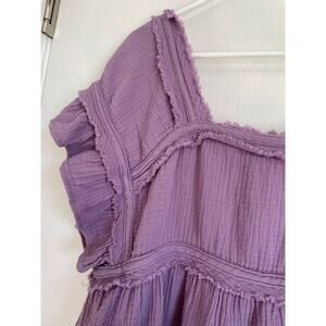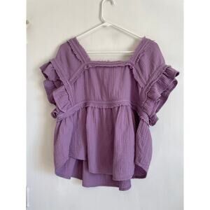 Andthewhy purple gauzy short sleeve ruffled top babydoll solid square neck Small
