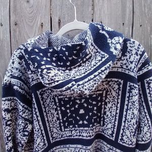 Andthewhy size S/M hooded knit open front cardigan blue white jacquard
