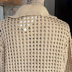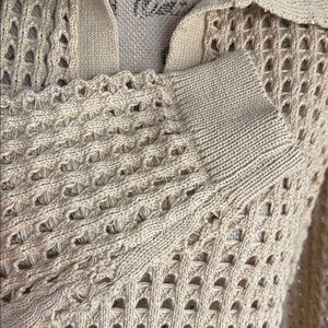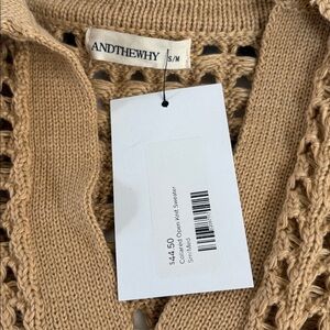 NWT ANDTHEWHY tan collared open knit long sleeve vneck sweater.
