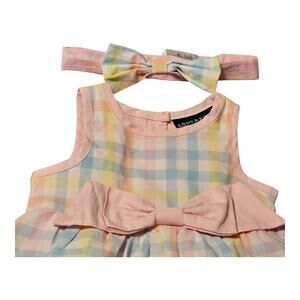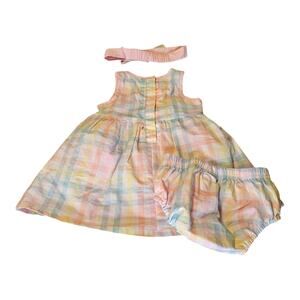 Andy & Evan 3 Pc Set Size 3–6 Months Pastel Plaid Dress, Bloomers & Headband