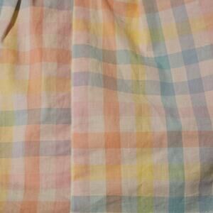 Color: Soft pastel plaid pattern in shades of pink, blue, yellow, and beige