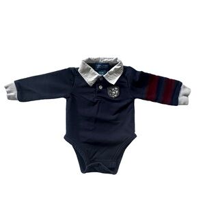 Andy & Evan Navy Blue Collard Long Sleeve Onesie Size 3-6M