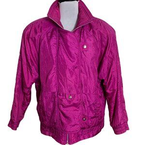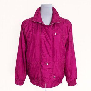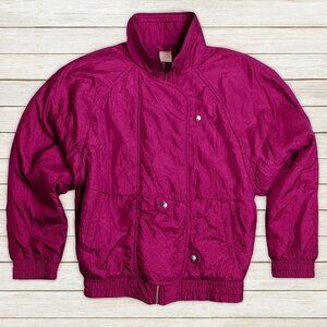Andy Johns 80s Magenta Nylon Parachute Jacket Women’s M Retro Windbreaker Zip Up Vintage Streetwear