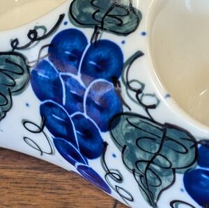 Beautiful Blue Grapes with Green Leaf pattern. 1 1/2" candles fit as well as tea lights (candles shown are NOT included).