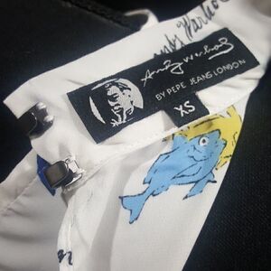 Shirt is in perfect condition except for a small rip in the seam at neck.