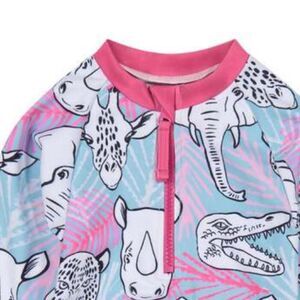 Andy and Evan pink and blue Aqua Animals rash gaurd swim with scrunchie NWT