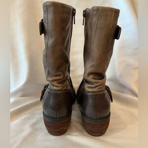 Anesha Slouchy All weather boots! Women’s size 41, excellent preowned condition. These boots have it all! The color is so nice, grey with brown buckle accents. Leather is in excellent condition, side zip for easy access, and these boots are lined with the softest fleece…feels like velvet. Cushioned footbed, rugged all terrain sole with a slight stacked heel 2”.