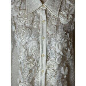 Anewsta Shirt Women Medium White 3D Floral Button Down Blouse NWT Boho Elegant