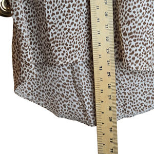 Angashion Shirt Women Small Brown White Animal Print Tie Neck Bow Blouse Top