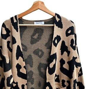 Angashion Vestidos Cotton Blend Leopard Print Open-front Cardigan, Size Large