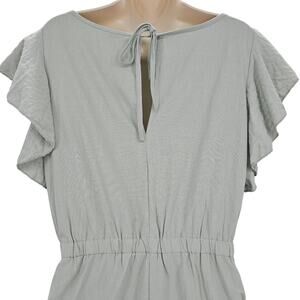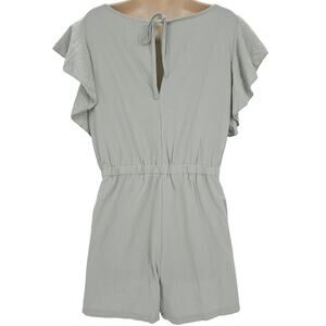 Angashion womans size XL Casual Ruffle Cap Sleeve Romper Mint Green tie waist one piece romper playsuit high round neck cap ruffle sleeves side pockets tie back with keyhole closure tie waist 2" in seam shorts NEW with tags