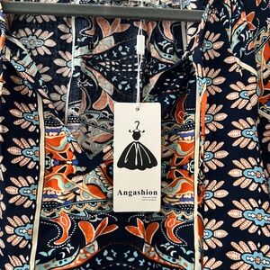 Angashion Women's Summer Tops Casual Floral Print V Neck Ruffle Short Sleeve Loose Tunic T Shirt Blouse. Brand new with tags.