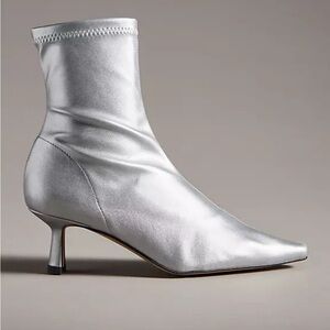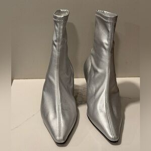 Step out in style with these elegant silver ankle boots. Perfect for any occasion, these boots offer a sleek and modern look. The shimmering silver color adds a touch of sophistication to your outfit. Size 41 (10-10.5).