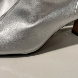 Step out in style with these elegant silver ankle boots. Perfect for any occasion, these boots offer a sleek and modern look. The shimmering silver color adds a touch of sophistication to your outfit. Size 41 (10-10.5).