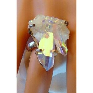 Angel Aura Druzy Quartz Cluster Sterling Silver Ring Sz 8 OOAK Handmade