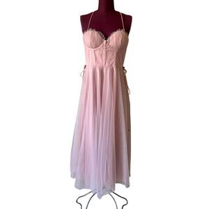 Angel Biba WANDERING IN THE LIGHT TULLE MIDI DRESS BLUSH size L Fits like M