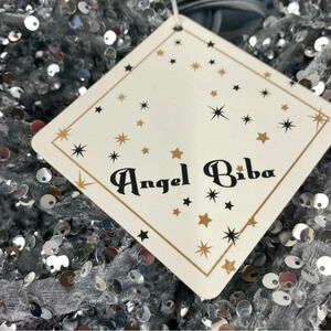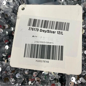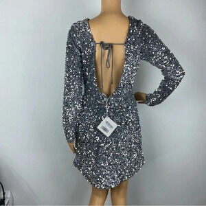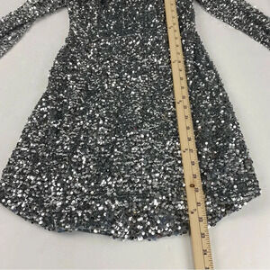 Angel Biba Womens 12 Silver Sequin Long Sleeve Dress NWT Holiday Cocktail Party