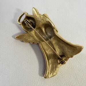 Angel Brooch Christmas Holiday Pin Rhinestone Wings Red & Green Enamel Gold-Tone