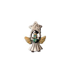Charming angel brooch set featuring gold and silver tones. Each brooch has unique details and colorful accents.