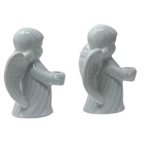 Add a touch of serenity and grace to your home with this beautiful set of two angel candle holders! These charming candle holders are perfect for displaying small, skinny candles, creating a warm and inviting ambiance.