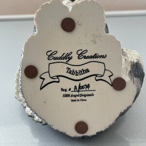 This sweet grey tabby, named Tabbitha, is made of solid resin and painted in hues of gray and white with pink inner ears and orange eyes. Exquisite detailing of the feathers and fur. She is perched and watching like a perfect little guardian angel ready to keep you company. The bottom has four pads to keep it from sliding and to protect surfaces. A great addition to any cat lovers collection or a poignant way to memorialize a pet.