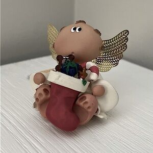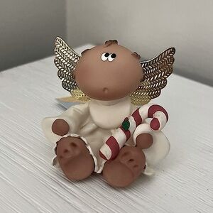 Adorable collectible holiday figurines from the Angel Cheeks collection! This charming set of 5 features sweet angels dressed for the holidays, each holding a festive item: a gingerbread house, presents, candy canes, Christmas tree and a stocking. Their signature wide-eyed expressions and golden wings add a heartwarming touch to any holiday dΓ©cor.