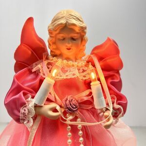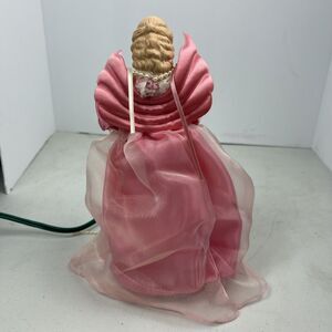 Angel Christmas Tree Topper Lighted Bisque Face Pink Dress Flashing About 9"