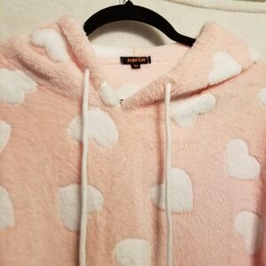 Angel Cult Womens Size XL Hoodie Pink Hearts Plush Fleece Pull Over Feminine Punk Cute Soft Valentines Day Love Super Soft
