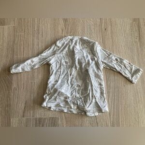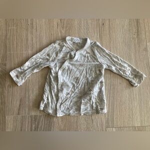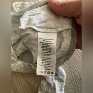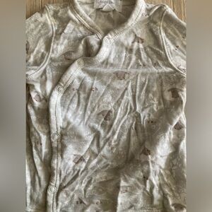 This Angel Dear baby top is long sleeves with a sheep pattern. There are snap buttons to close the top. The material is 95% viscose (from bamboo) which makes the top very soft and flexible! In very good condition with minor wash wear!