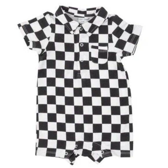 Angel Dear Bamboo Polo Romper Shortie in Black Checkerboard NWT 3-6M and 18-24M