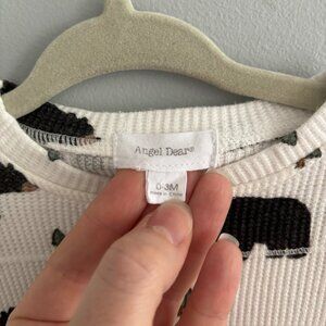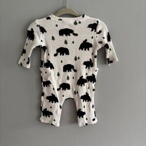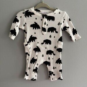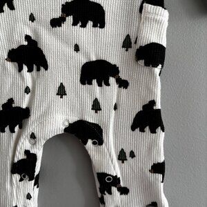 Angel Dear Bamboo Thermal Henley Playsuit Romper in White Black Bears EUC 0-3M