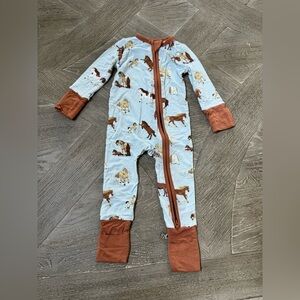 Soft bamboo pjs with foldover feet and mittens. 2-way zipper. Excellent condition.