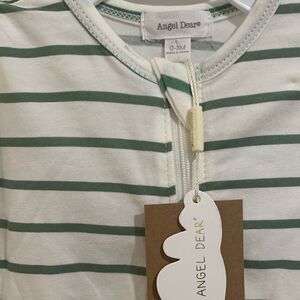Angel Dear Green and White Striped Footsie, New