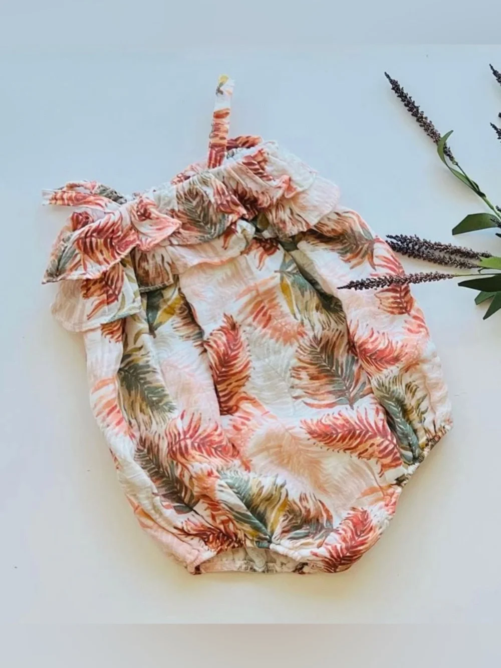 This adorable muslin bodysuit has two rows of ruffle details as the neckline. Like new. Only washed never worn. 0-3 months. Happy to offer bundle discounts! 💗