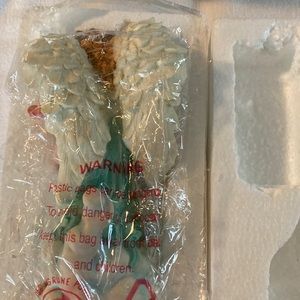 Brand new in the box gift gallery Angel Figurine 7” L. Beautiful green and pink