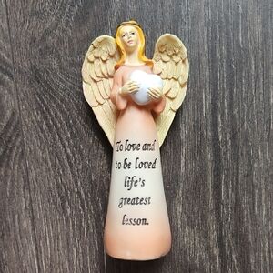 Charming angel figurine holding a heart, perfect for adding warmth to your home decor. Features a soothing orange and white color scheme.