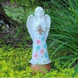 【Attractive Design for Garden Decor】Features beautiful crafted wing details, colorful flowers, Welcome sign and cross, the decorative garden figurine is a very appealing statue, adding a lot of characters to your garden, patio, backyard, pond, lawn, window sills, flower bed and plant stand. Enjoy the vibrant colors on day and beautiful light at night.