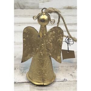 Angel Gold TEXTURED METAL ANGEL HOLDING A Star HOLIDAY BELL Christmas. This is beautiful textured gold angel would look beautiful on your tree. It features a rustic style with a jute string hanger. It is 7 1/2 inches long.