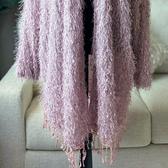 Angel Heart Womens SOFT Mauve Fuzzy Fringe Cardigan Wrap Kimono 1XL Holidays