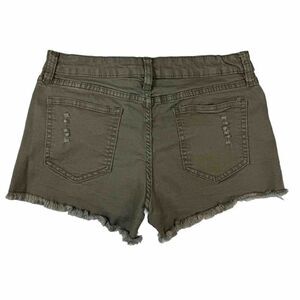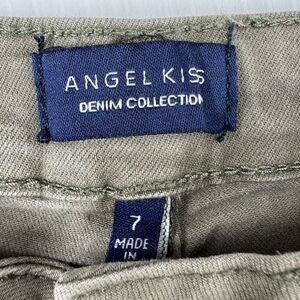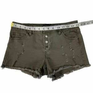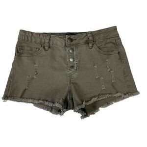 Angel Kiss 7 Denim Collection Shorts Olive Green Button Fly Raw Edge Hem