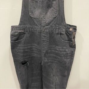 Angel Kiss Distressed Black Denim Overalls Jumpsuit Size XL